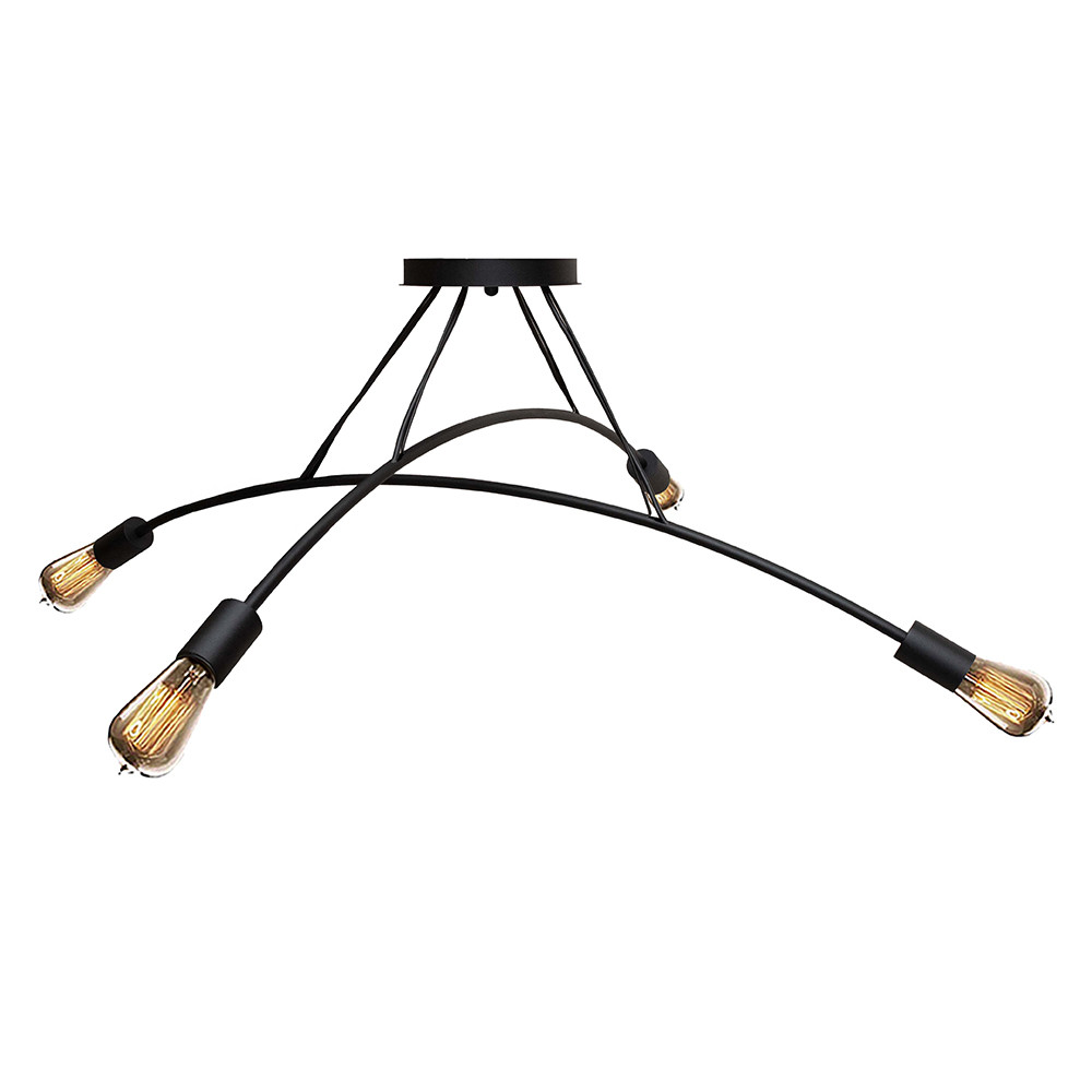 Чорний металевий каркас із витонченими вигнутими дугами робить люстру візуально легкою, а відкриті лампи E27 підсилюють відчуття простору та наповнюють приміщення м'яким, теплим світлом. Дизайн натхненний стилем лофт і хай-тек, що робить люстру універсальним рішенням як для сучасних квартир, так і для стильних кафе, барів і офісних просторів.